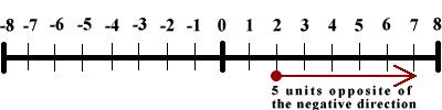 subtraction or the sign on the integer. For example take the addition problem 5 + -7 = -2.