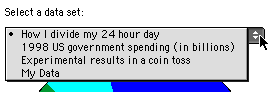 The user may choose from a set of pre-made data sets about daily activity, coin tosses, government spending, and more. The choice menu shown below has the pre-made data sets.