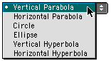 The user may select a conic section equation by choosing from the drop down menu shown