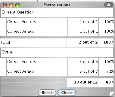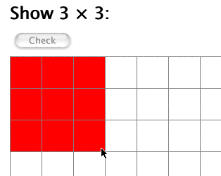 Note: If you chose "Show commutative property", when drawing the rectangle with the dimensions of the factors, imagine the grid as if it were the first quadrant of the coordinate plane and your factors as your x-axis and y-axis movements. For example: 4 * 1 would be displayed as 4 over and 1 up. 4 is your x-axis movement and 1 is your y-axis movement. The answer will be counted as incorrect otherwise!