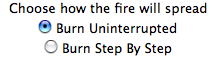 You can choose how the fire burns by clicking the button beside
