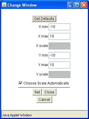Set Window to determine how the coordinate plane will appear on your screen. A new window will open