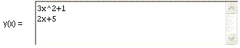 The Function area is for entering functions. To graph a function, type the formula of the function you want to graph in the space at the bottom of the applet, next to y(x)=. You may graph up to nine functions on the same plot. Enter one formula per line, as shown.