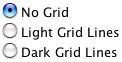 There are three types of grids: No Grid, Light Grid Lines, and Dark Grid Lines. To activate any of these three options, highlight the circle next to the appropriate option: