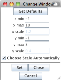 Set Window button and entering new values for the x max, x min, y max, or y min. You can also set how
