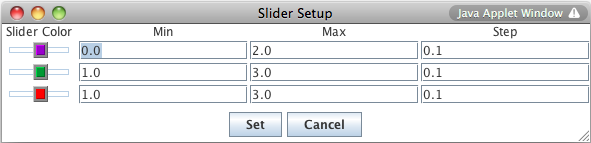 Slider Limits button brings up a dialog box that allows you to set the minimum and maximum values of each