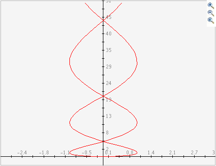The following is a graph of the parametric equations x(t)=sin(t) and y(t)=.5t^2. This cannot be