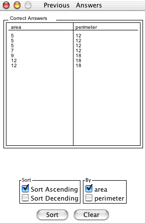Compare Area and Perimeters button allows you to keep track of your previous correct answers in order to compare the
