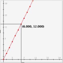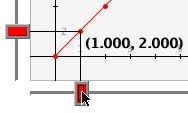 To navigate the graph use the slider bars on the bottom and left side of the graph. Click on the central rectangle and drag across. For the slider bar on the bottom drag left and right, for the one on the left side drag up and down. Notice that both slider bars move and they attach to the point closest to the slider bar. The value that appears on the screen is that of the point to which the slider bar is currently attached.