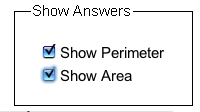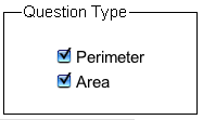 * Choose which question types you would like to appear by clicking the checkbox next to Perimeter and Area. Notice, you must select one or the other. You cannot select nothing: