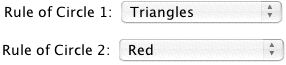 You can choose between any of the shape, color, and size rules. In this example, all of the shapes in circle 1 will be red: