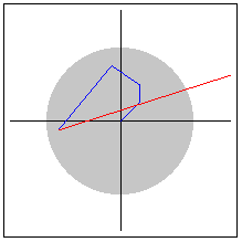 The Graph shows the path (also called the orbit) of the starting point as it is plugged into the function. The red line is the path from the previous point to the most recent one. If the orbit path goes outside the gray circle of radius 2, the starting point is guaranteed to be an escapee.
