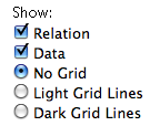 You can choose what you see on the graph. You can select to show all relations, all data, and/or the grid lines by checking the appropriate box or radio button in the Show section.