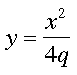Student: Well, for the vertex to be halfway in between the focus and the directrix we must have p = - q. Therefore, the equation is: