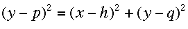 Mentor: Geometrically, of course, a parabola is defined as a set of points equidistant from a focus and a directrix. So, using the Pythagorean Theorem again, if the vertex of the parabola is at (h, k) then this equation seems to make sense...