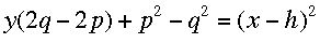 Student: Hmm, since we're just moving the graph around, the distance between the focus/directrix and the vertex, q, should stay the same. Therefore, would the equation just be: