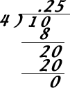 Mentor: Remember from the Comparing Fractions Discussion that fractions are really division. How would you turn 1/4 into a division problem?