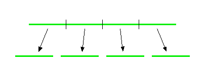 Now let's build similar line segments at a smaller scale. We'll use a scale factor of 4 (the large segment is 4 times longer than the small ones).