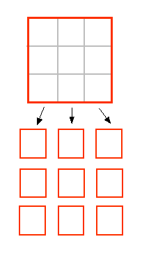 Notice that we can get 9 "self-similar" squares out of the original square at this scale factor. So: Dimension = 2, Scale = 3, and Number of self-similar objects = 9.