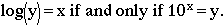 This says that the log base 10 of y is the power of 10 that is equal to y. Here are some logs we can find in our heads: