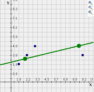 Mentor: It is not too hard to make a close guess if you take some time to look at the data. We can try doing that with a problem right now. We can use the activity Regression to help visualize it. First, plot (1,2) (2,3) and (3,4). How do you think the line of best fit for this data will look?