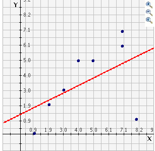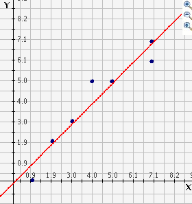 Mentor: Exactly. It looks like this because of the outlier. The outlier is causing the slope of the line of best fit to be less steep than you might expect. If we take out the outlier, (8,1), here is what the graph would look like: