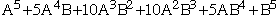 See how the coefficients (that's the math term for the numbers in front of the letters in the expression) are just the numbers from row 5 of the triangle? So we write the power combinations in order (think of the "number of girls" problem) all A's (no B's), 4 A's (1 B), three A's, etc., up to no A's and then use the table for the coefficients.