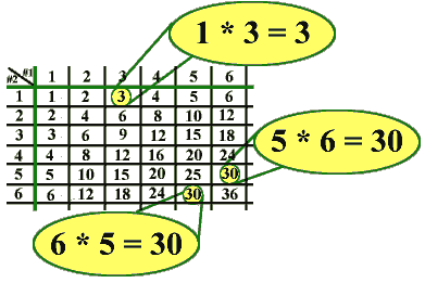 Student: Well, we have a table six by six, so there are 6*6=36 different outcomes for the game.