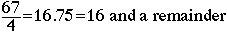 Mentor: No, but you have all the information you need. The 16.75 lets you know that 4 goes into 67 sixteen times, so now to find the remainder, just take.
